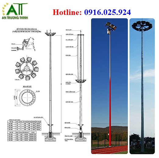Hình ảnh bản vẽ cột đa giác giàn đèn nâng hạ 20m đến 30m